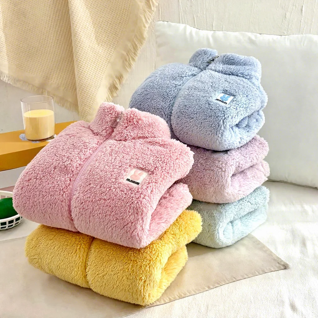 New Style Coat - Boys' and Girls Fall and Winter Fleece-protected Warm Top with Stand-up Collar and Double-sided Fleece Exterior